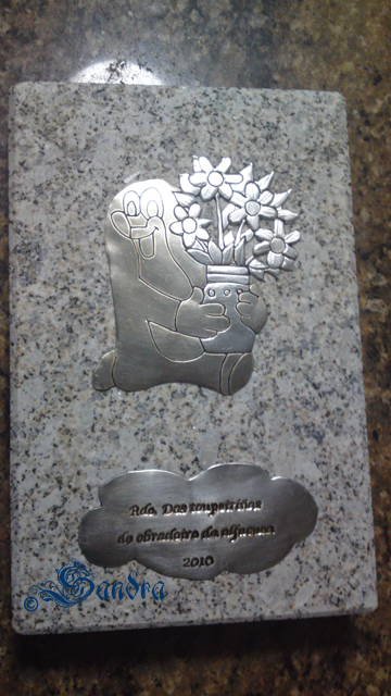 Lo he pegado a un bloque de piedra, para que haga de base y se quede siempre de pie sin necesidad de apoyo.