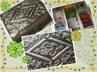 Este es el motivo que le he colocado, lo he repujado en aluminio, y le he envejecido el fondo con Betún de Judea.